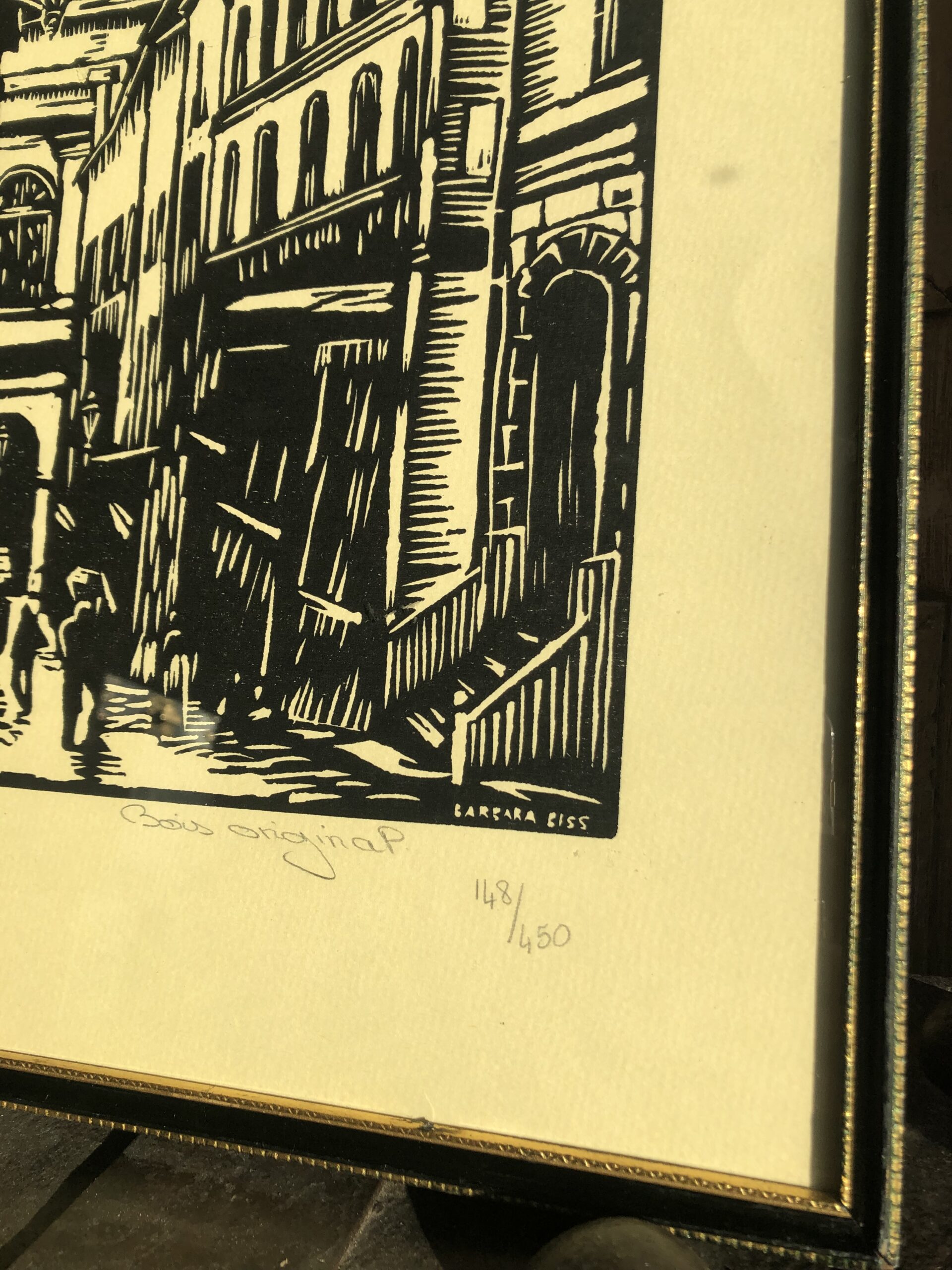 Gravure sur bois Original par Barbara Biss, numéroté 147/450 exemplaires