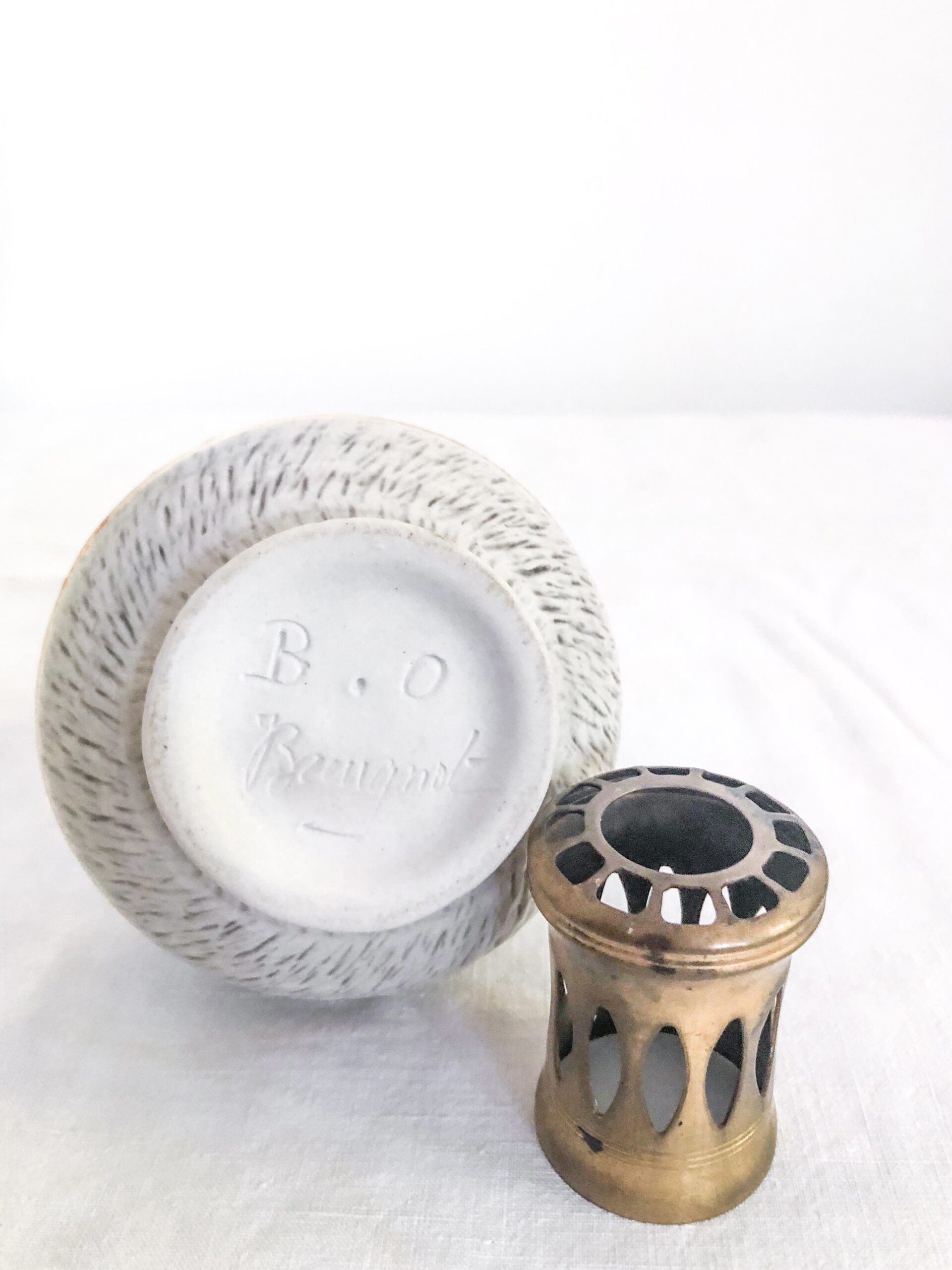 Cette Lampe Berger en grès  de Benny sur Loire est signée Breugot en dessous.