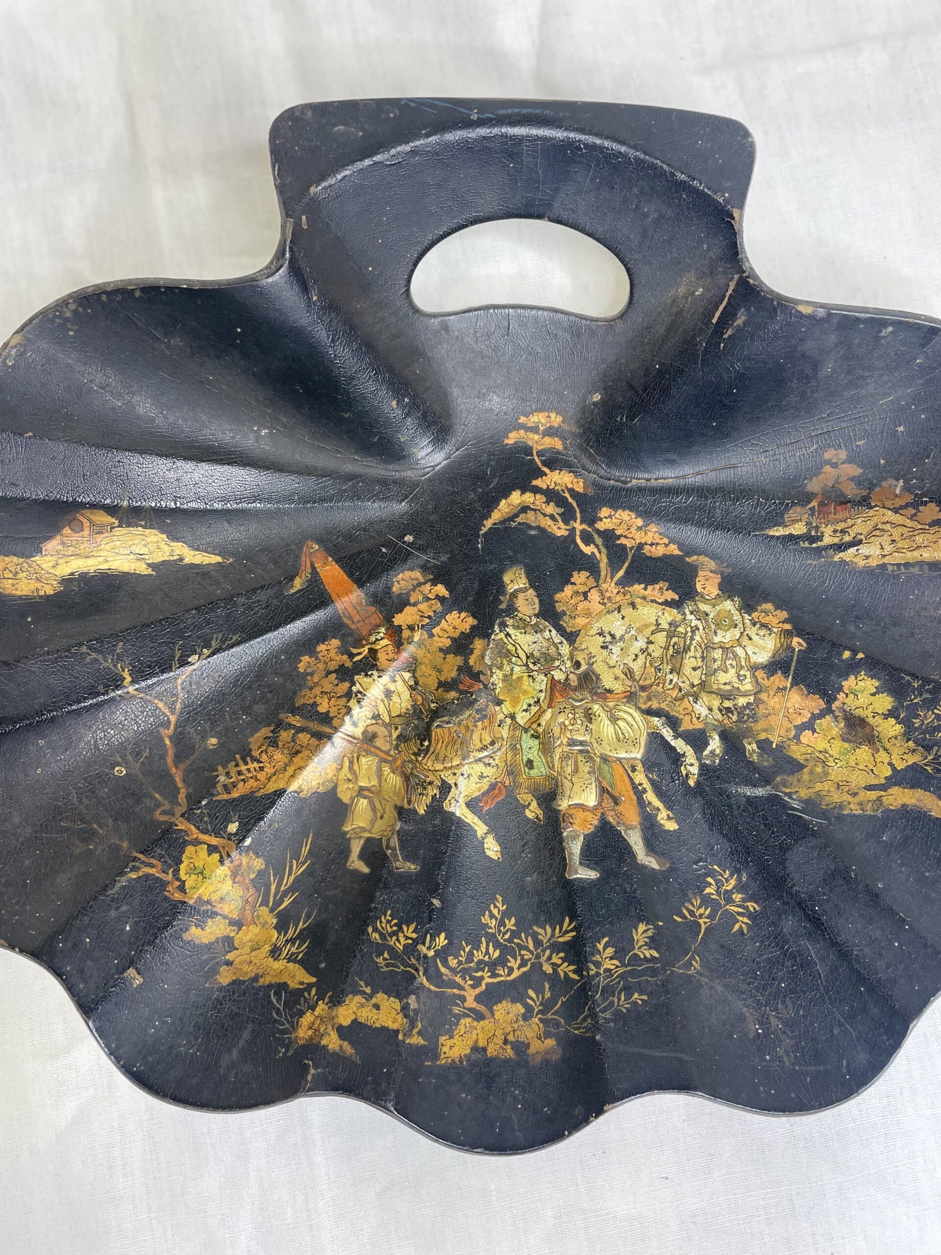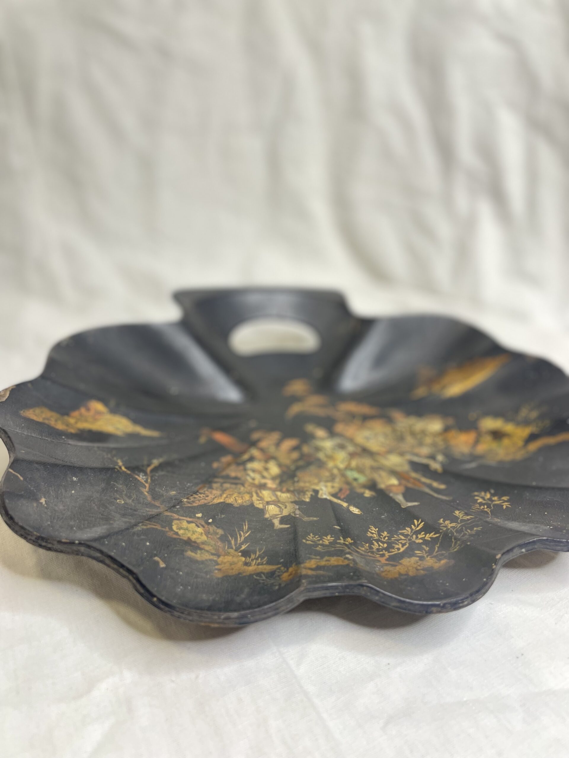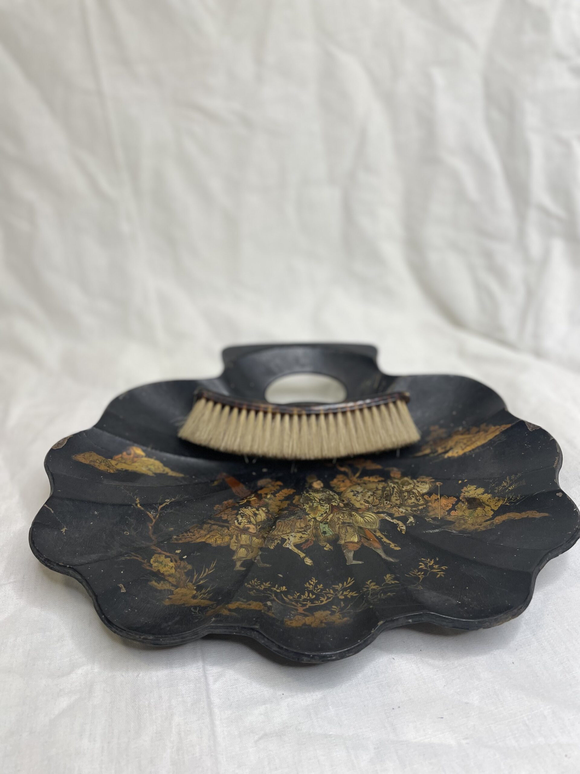 Découvrez l’élégance fusionnée du Japon et du style Napoléon III avec notre ancien ramasse-miettes en papier mâché.