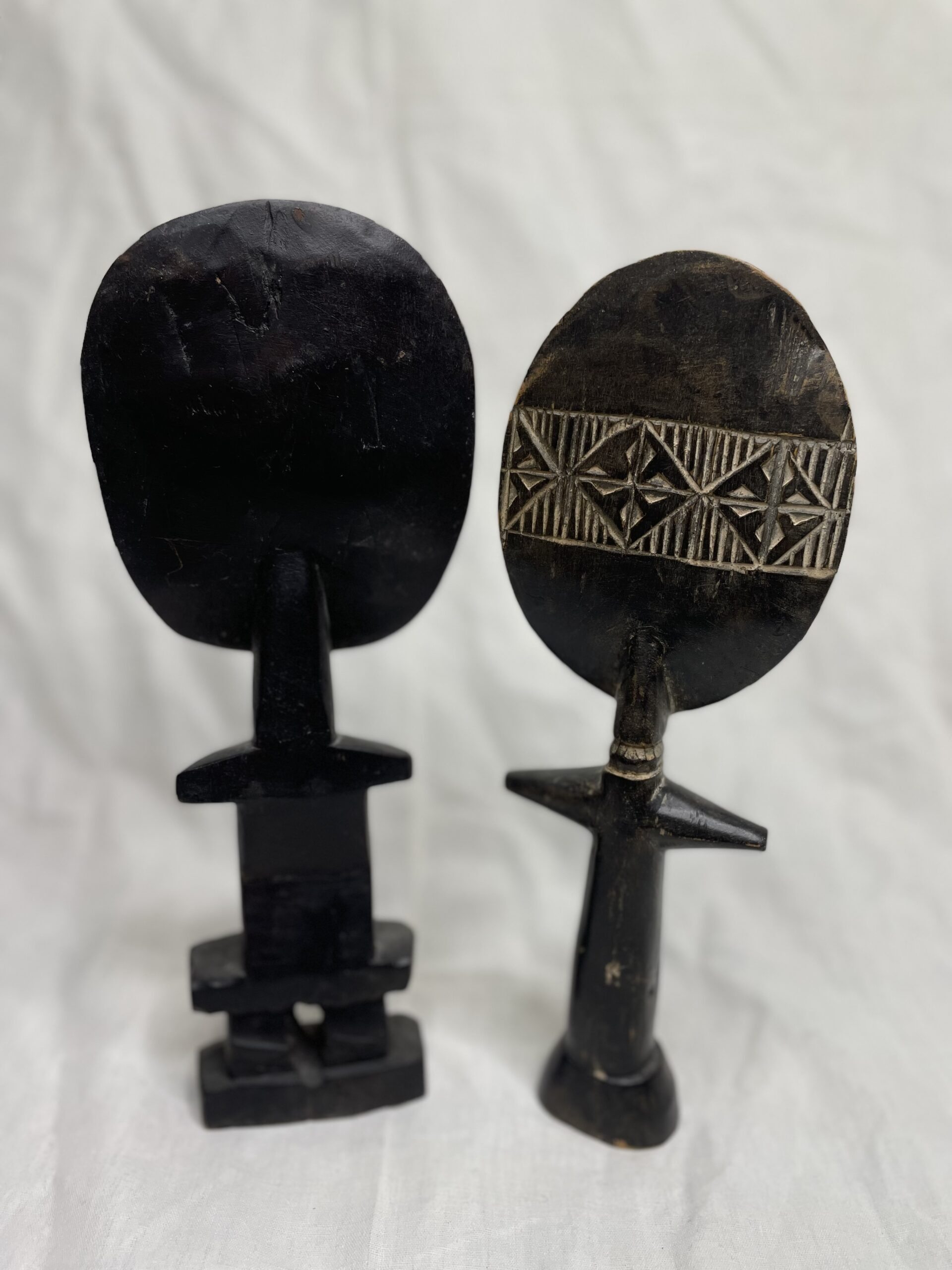 Ces poupées de fécondité originaire du Ghana, sont sculptées dans un bois foncé.