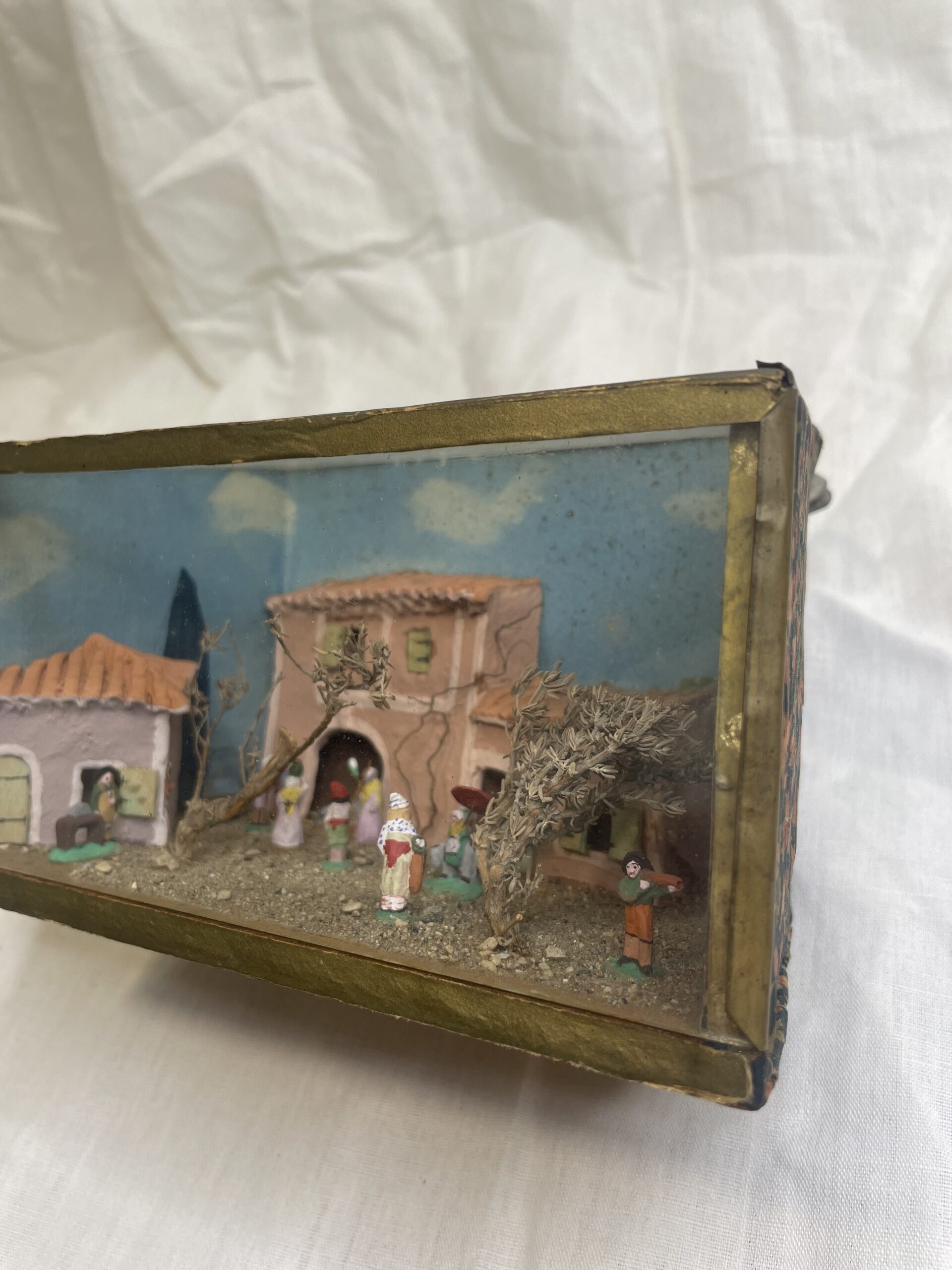 Découvrez l’art ancien avec notre tableau vitrine d’une crèche provençal.